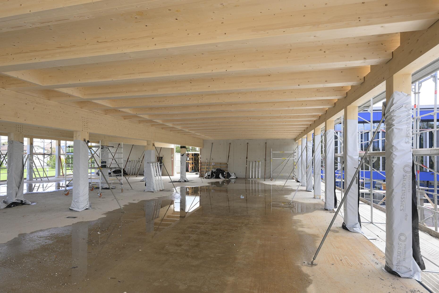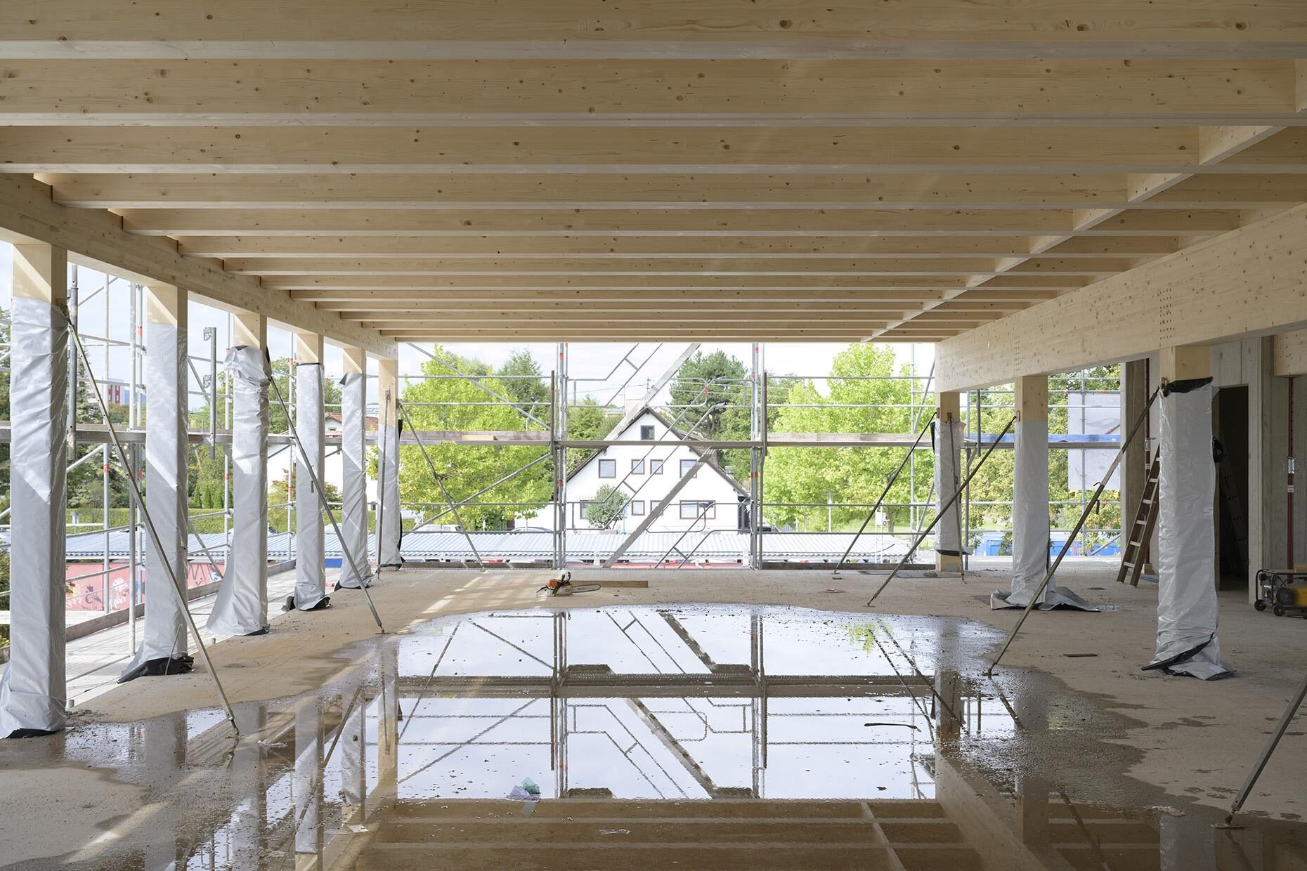 Die bestehende Mittelschule St.Ruppert in Freilassing soll einen neuen Anbau erhalten. Durch steigende Schülerzahlen und einen Bedarf an Ganztagesbetreuung soll der Standort nachverdichtet werden. Unser Entwurf sieht einen Hybridbau vor. Keller und Erdgeschoss werden in Stahlbeton gefertigt und die Obergeschosse in Holzbauweise. Durch die Vorfertigung der Fassaden- und Deckenelemente und einer getakteten Anlieferung ist eine schnelle Montage möglich. Der Neubau umfasst zusätzlich zu den Klassen- und Fachräumen auch einen neuen Verwaltungsbereich im EG. Das Bestandsgebäude wird im EG zum größeren Speisesaal mit Ausgabeküche und zum Ganztagsbereich umgebaut. Der Energiestandard wurde mit KfW 40+QNG Plus festgelegt. Zusätzlich wird eine DGNB-Zertifizierung im „Silber“-Standard und die Holzbauförderung realisiert. Auf dem extensiv begrünten Dach ist eine PV-Anlage geplant. Die Mitwirkung beim Verwendungsnachweis und der Schulaufsichtlichen Genehmigung ist auch Teil unserer Beauftragung.