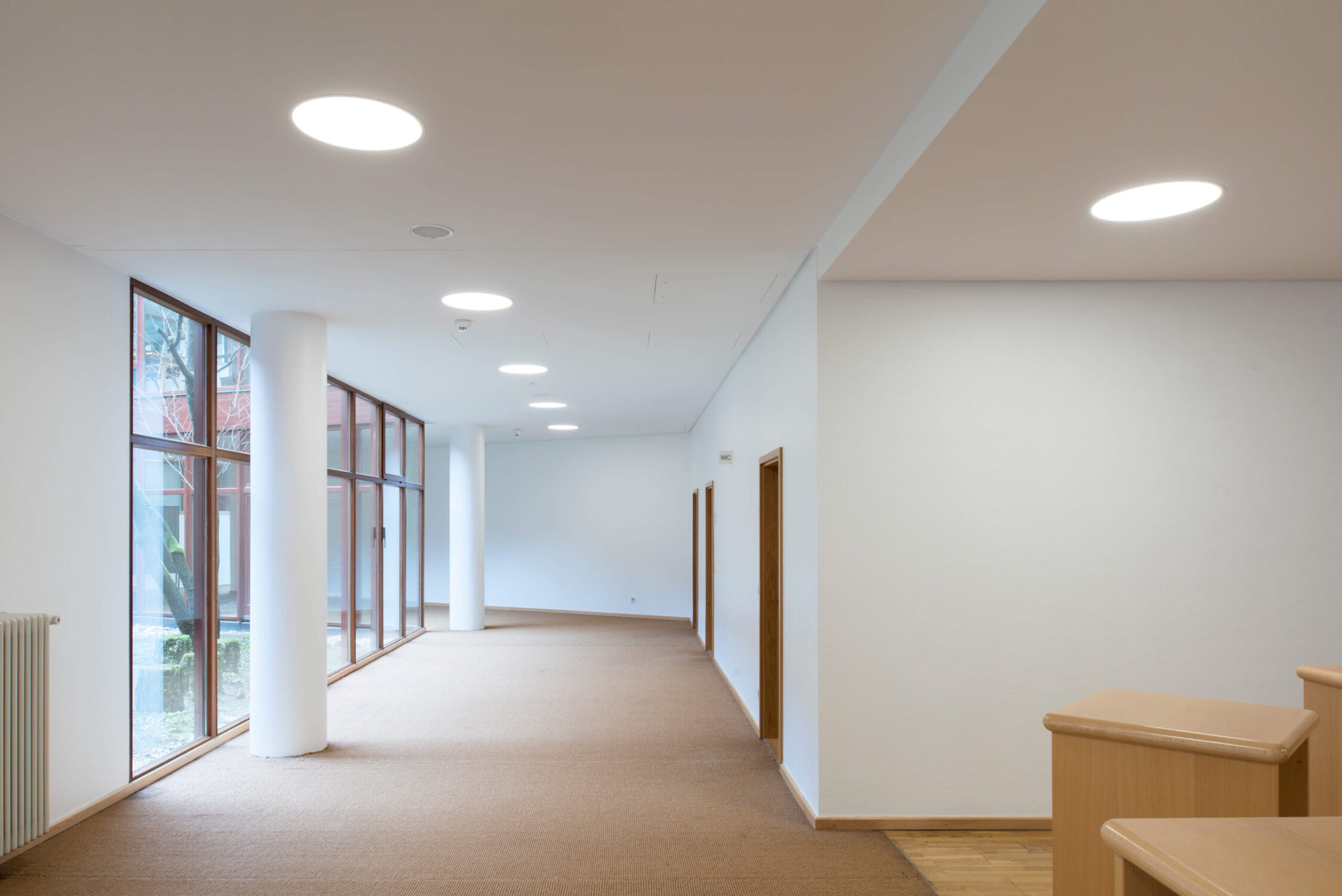 Die Sparkassenakademie in Landshut umfasst in mehreren miteinander verbundenen Baukörpern ein Hotel, Schulungsräume, Sportstätten und einen Speisesaal.