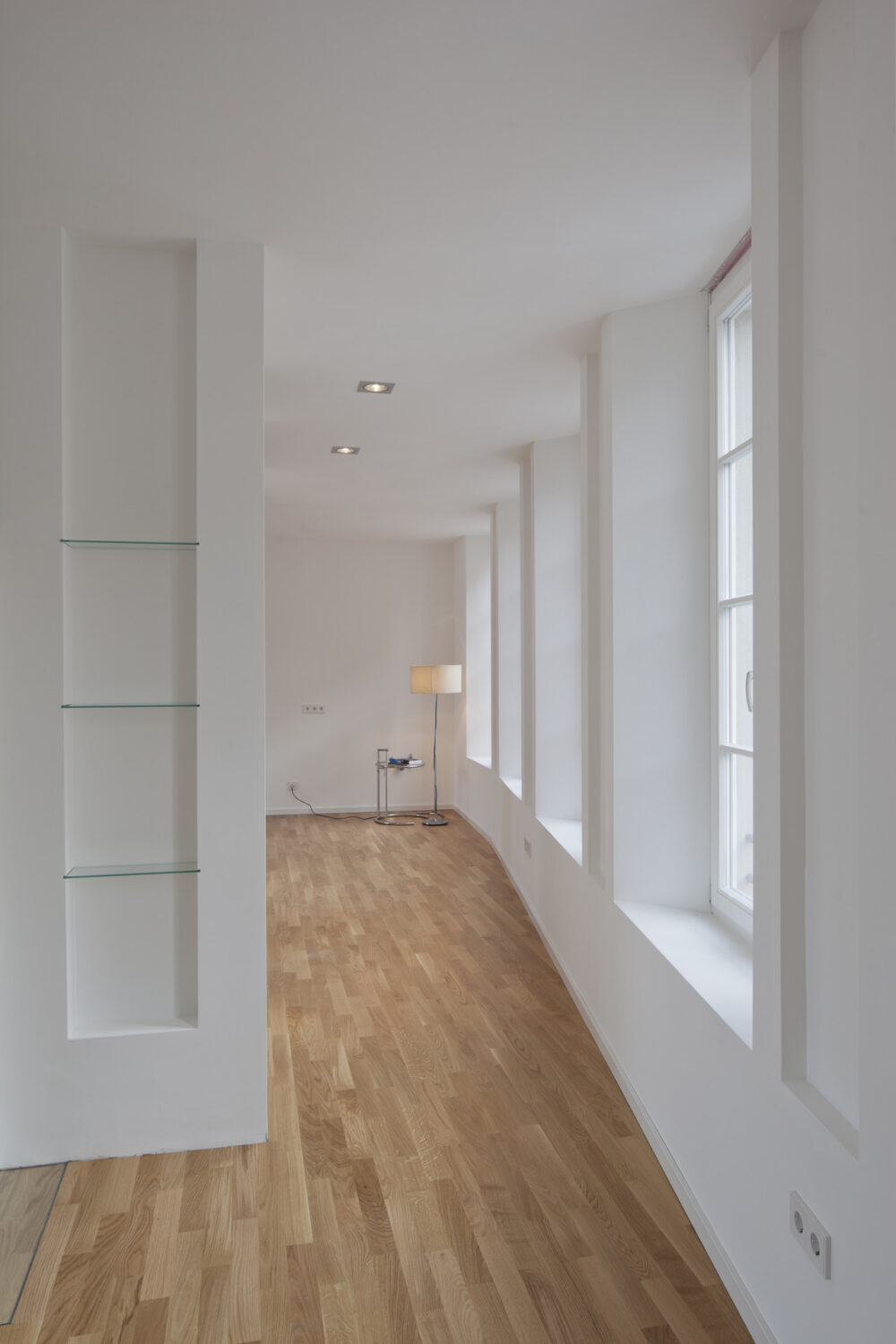 Das Stadthaus in der Fischergasse wurde in der Landshuter Altstadt errichtet. Es fügt sich in Form und Materialität in das vorhandene Stadtbild ein. Eine feine Differenzierung der Fenstergeometrie in den unterschiedlichen Etagen verleiht dem Haus eine ungewöhnliche Erscheinung. Das Haus wurde in einschaliger, monolithischer Bauweise mit einer Mauerwerksdicke von 49 cm errichtet. Schlechte Bodenverhältnisse und die Nähe zur Isar führten dazu, dass das Haus ohne Keller realisiert wurde.
