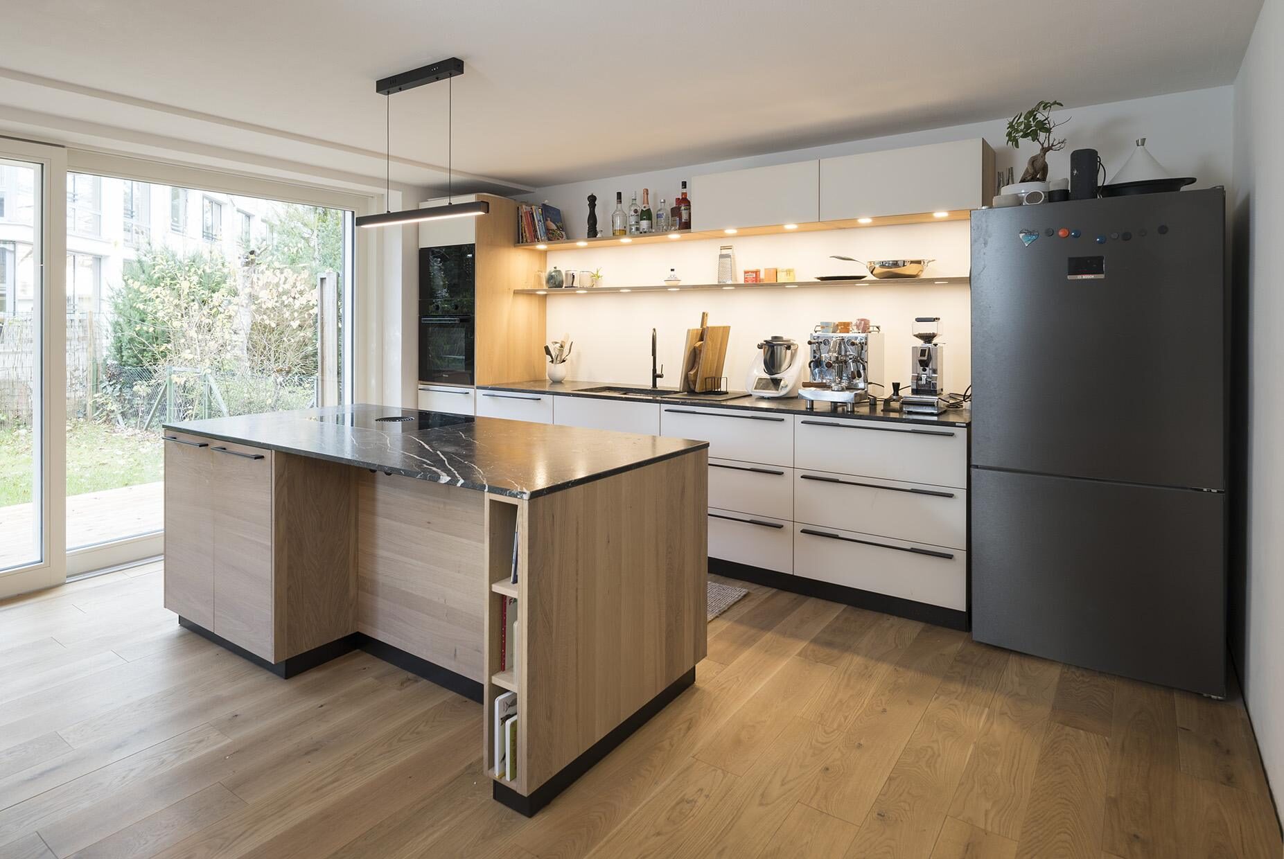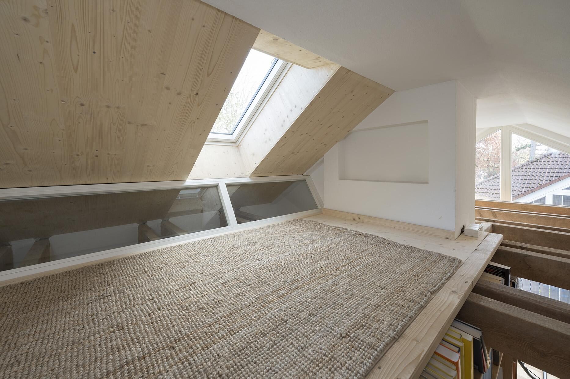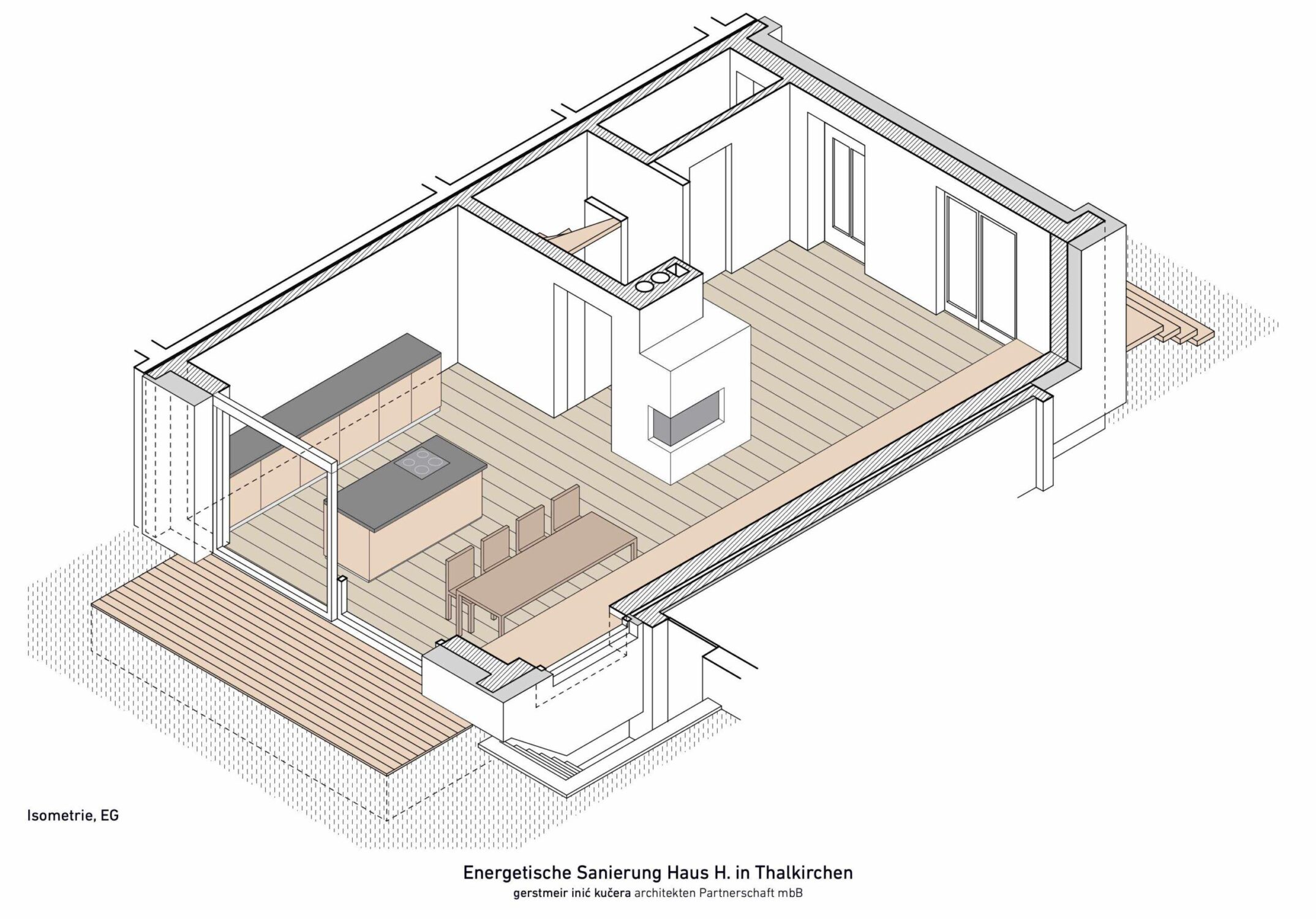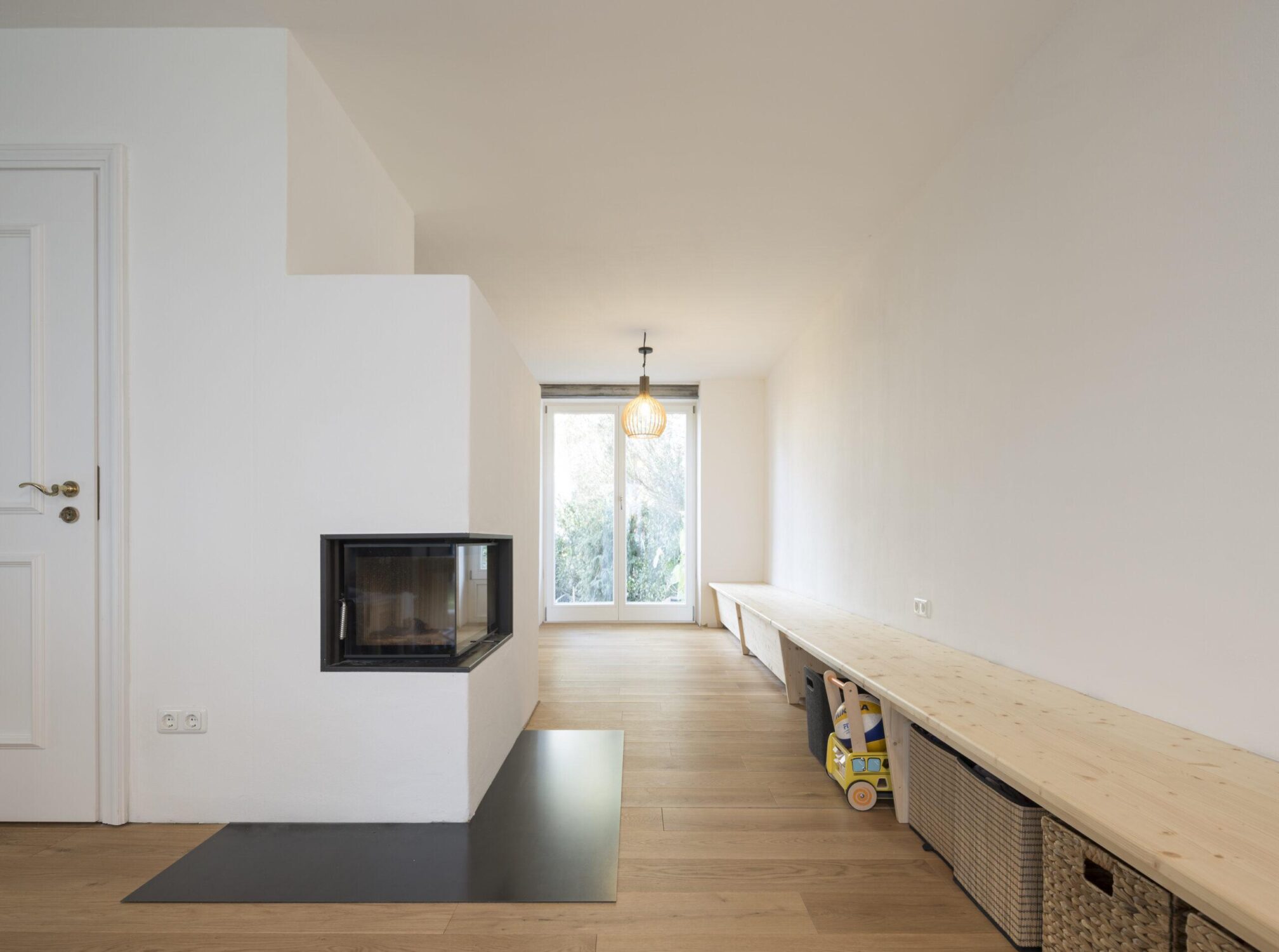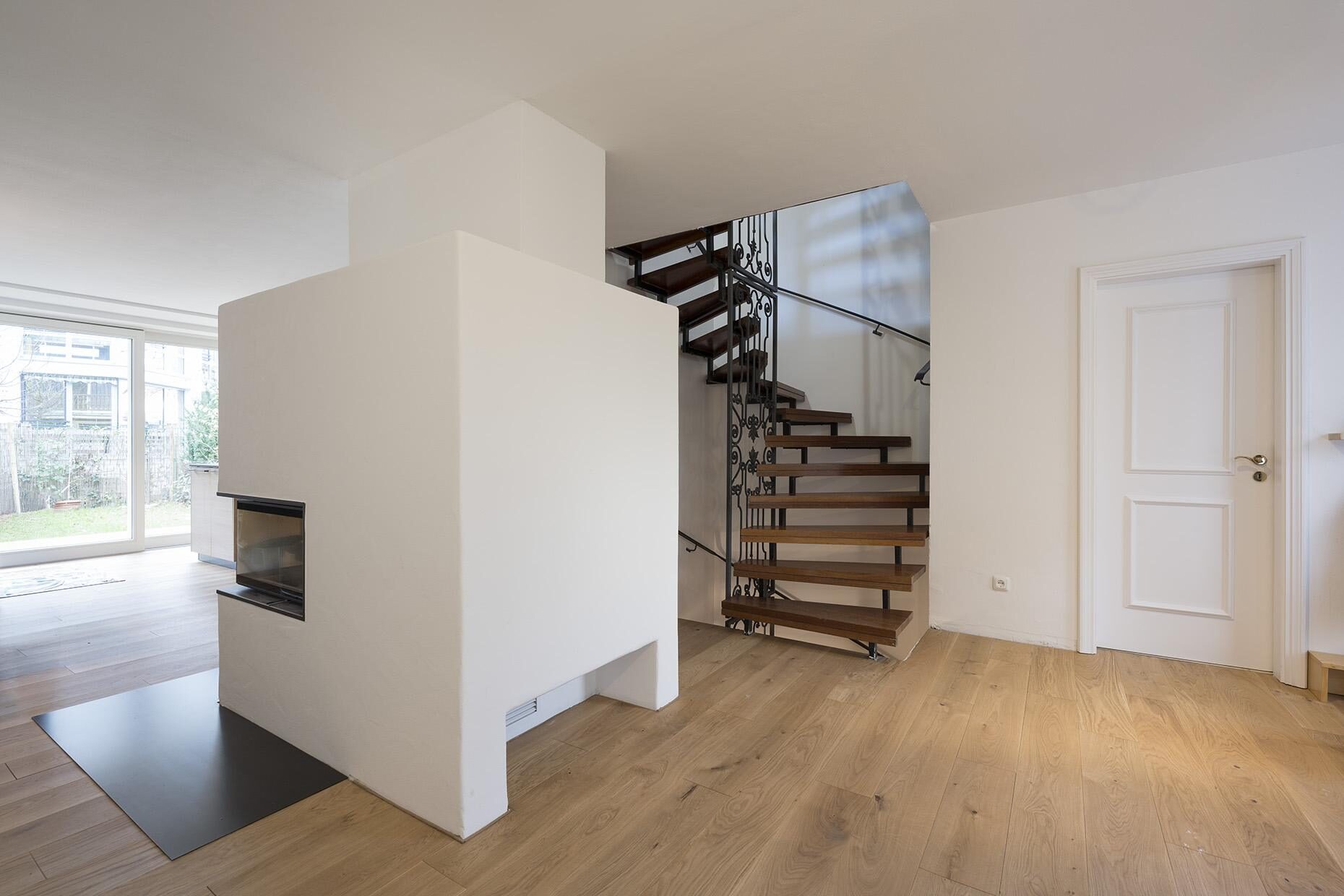 Ein bestehendes Reihenendhaus aus den 1970er Jahren sollte energetisch saniert werden. Das Gebäude wurde vollständig gedämmt und alle bestehenden Fenster ersetzt und vergrößert. Mit dem Einbau einer Wärmepumpe wurden auch die Heizkörper durch neue Flächenheizungen ersetzt. Neben der klassichen Fußbodenheizung wurden an Wand und Dachschräge Lehmbauplatten der Firma Naturbo verbaut. Die Heizregister sind in den Platten bereits integriert und müssen nach Montage nur noch verpresst werden. Mit dem Einbau der Lehmbauplatten haben wir mal etwas neues ausprobiert. Das Haus war ein weiterer Schritt in der bürointernen Entwicklung beim nachhaltigem Bauen.